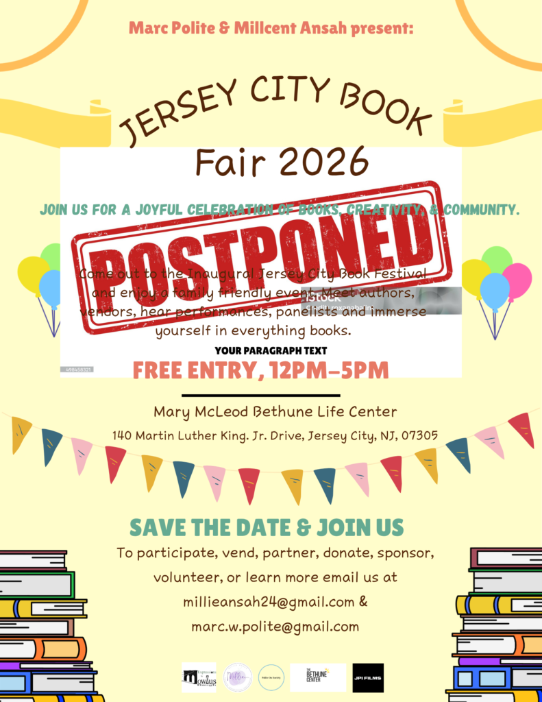 Good evening, everyone. We thank everyone who reached out to express interest in the Jersey City Book Fair 2026. For logistical reasons, the fair is postponed. We’re looking to convene at a later date this year.
