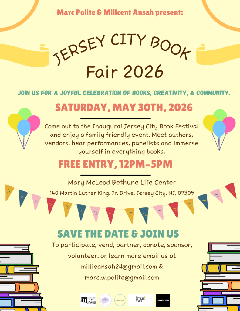 Good morning, my readers. As you may recall from last month’s e-mail, a new book fair is in the works. It is my pleasure to announce the first Jersey City Book Fair. In collaboration with poet and curator Millicent Ansah, we will be convening JCBF 2026 at the Bethune Center in Jersey City, NJ.